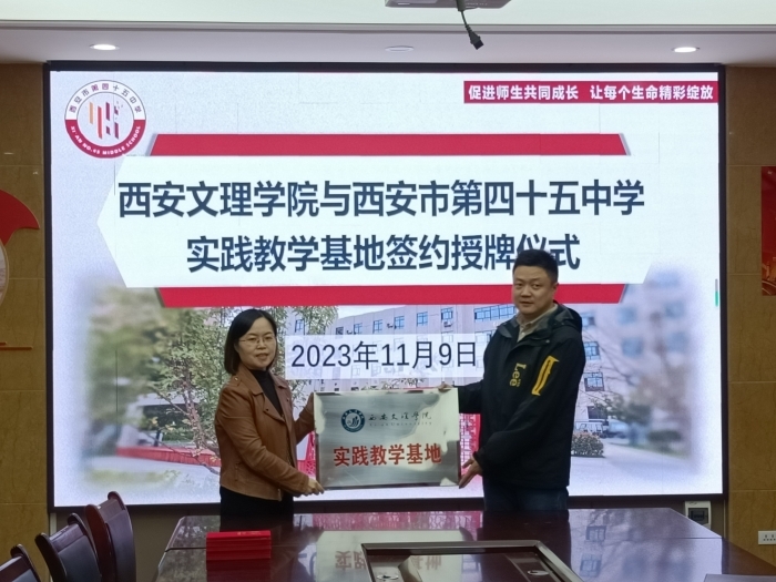 11月9日下午,化学工程学院教学副院长宋瑞娟、学生工作办公室主任张莎和教育实习负责老师唐永强一行赴西安市第四十五中学参加实践教学基地签约授牌仪式。西安市第四十五中学党支部书记王金晖、校长莫荻、校长助理王程...