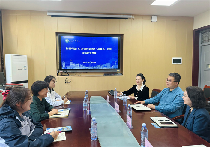 3月29日下午,63750部队星光幼儿园园长唐晓红一行三人来校,与学前教育学院党总支书记刘爱霞,副院长赵四鸿、青年教师秦亚楠、科研秘书田红娟等洽谈合作。 首先,赵四鸿陪同来宾参观了学院的美工创意工坊等实验实...