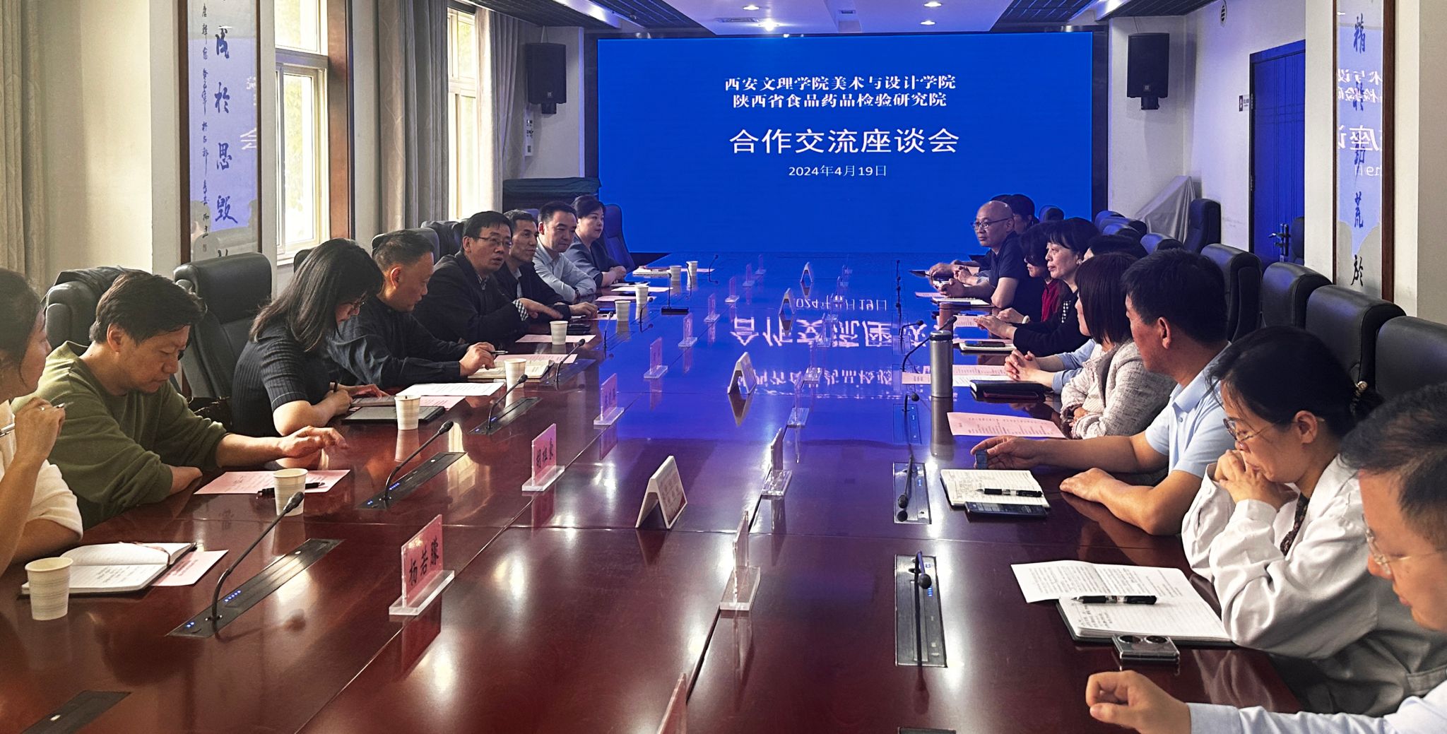 4月19日下午,由校党委委员、副校长龚杰昌带队,发展规划处处长安振学,美术与设计学院院长田军、党总支书记魏夫涛、副院长陈晓璐和学院系部主任胡祖豪等一行九人赴陕西省食品药品检验研究院调研,就下一步合作进行了深入交流。陕西省食品药品检验研究院党委书记、首席专家刘海静,副院长戴涌、总检验师徐长根、院长助理杨晓莉、李涛及各部室主任参加了调研和座谈。刘海静对龚杰昌等一行人的到来表示热烈欢迎,介绍了省药检院的发展历程、...