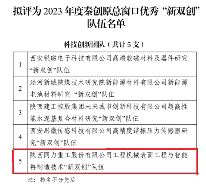 近日,秦创原创新促进中心公布了《2023 年度秦创原总窗口优秀“新双创”队伍名单》中,烕尼斯人机械与材料工程学院刘凌教授牵头申报的“陕西同力重工股份有限公司工程机械表面工程与智能再制造技术新双创队伍”在列。此次...