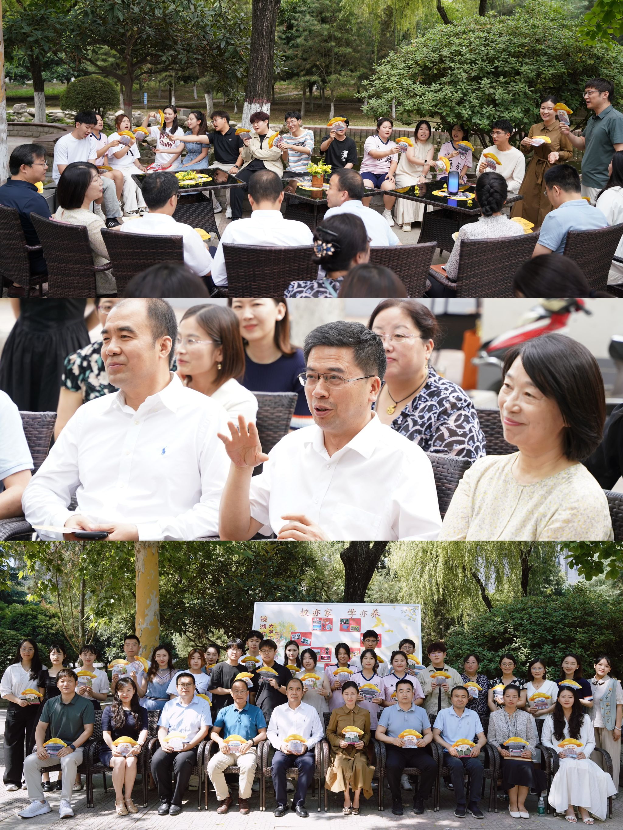 6月14日上午,由学生工作部主办,历史文化旅游学院承办的“镜湖边”大学生文化育人主题活动第二季“校亦家 学亦养”在校园镜湖畔举办。校长陈刚,副校长邬连东,党委宣传部、招生就业处、后勤管理与保障处、图书馆负责人,学工部处科级干部,师范学院、学前教育学院学工干部代表,历史文化旅游学院师生代表、校友代表、全体辅导员参加活动。活动由学工部部长刘倩倩、历史文化旅游学院学生工作负责人袁博主持。伴随着主题曲《镜湖边的丹桂树》...