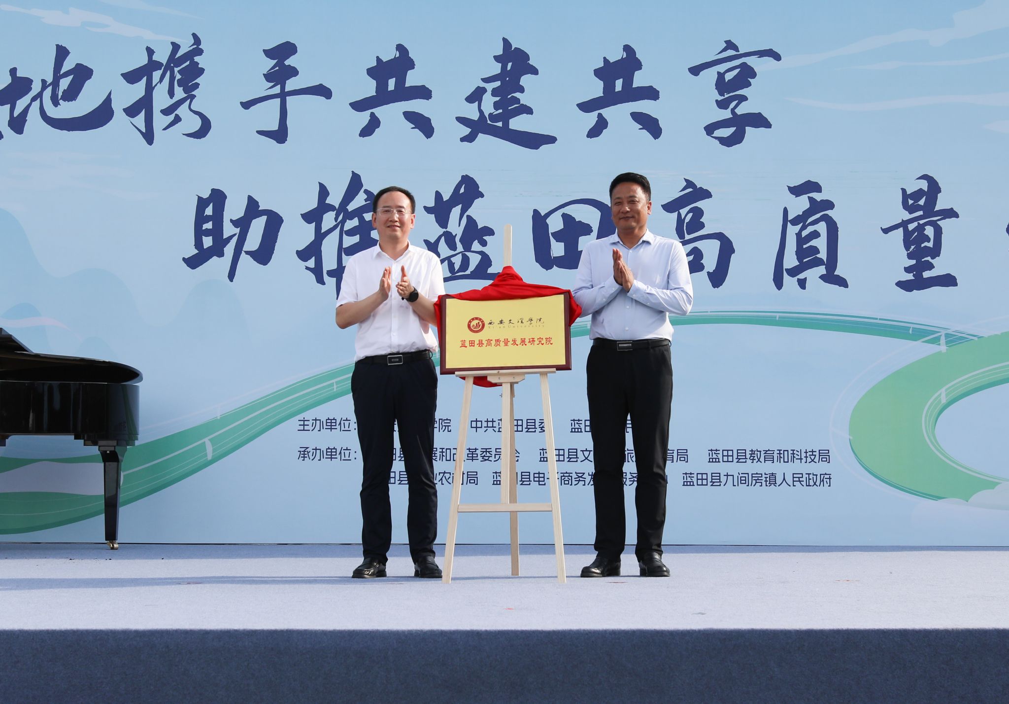 6月19日,烕尼斯人官方网站蓝田县高质量发展研究院成立大会暨烕尼斯人毕业季汇报演出在蓝田县九间房镇峪口村荞麦岭举行。校党委委员、校务委员鲍锋,蓝田县委常委、副县长苏护强致辞,并为“烕尼斯人官方网站蓝田县高质量发展研究院”揭牌。蓝田县副县长李永波向受聘的6位专家颁发聘书,陕西省社科院副院长王建康作为专家代表做了表态发言。 苏护强在致辞中指出,近年来学校与蓝田深化校地合作、产教融合、科教融汇,共同开展多项务实合作。希望学校持续发挥自身人才、...