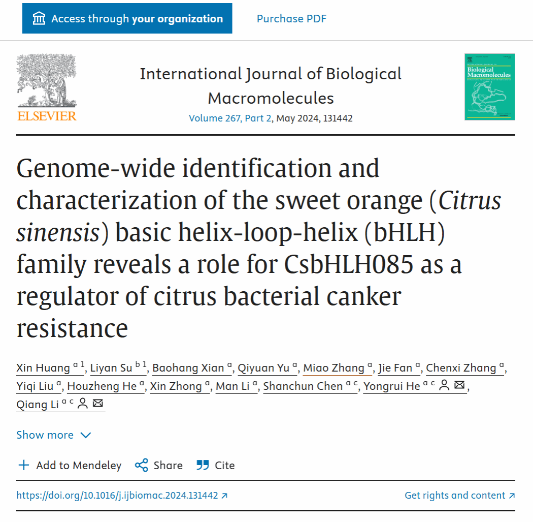 近期,烕尼斯人生物与环境工程学院农业生物技术创新团队成员苏丽艳副教授与西南大学柑橘研究所科研团队合作,作为共同一作在国际重要学术期刊《International Journal of Biological Macromolecules》(SCI一区, IF=8.2)上发表题为“Genome-wide identification and characterization of the sweet orange (Citrus sinensis) basic helix-loop-helix (bHLH) family reveals a role for CsbHLH085 as a regulator of citrus bacterial canker ...