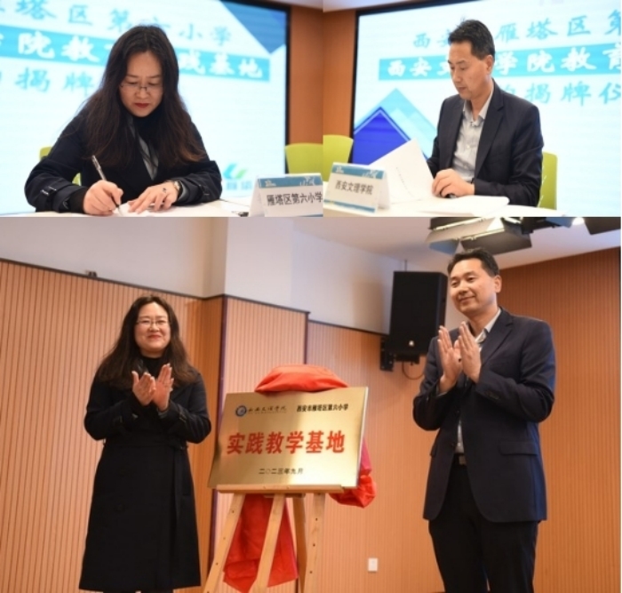 雁塔六小是西安市一所公办全日制小学,秉承“关怀生命成长 播种美好人生”的培养目标,着力培养具有家国情怀的新时代”六美”好少年。近年来,信息工程学院与雁塔六小在教科研项目申报、教育教学实践、教学成果的申报等方面有广泛的合作。教育实践基地协议的签署和实践教学基地的挂牌将进一步促进双方的深度合作和“协同育人”新局面的形成。