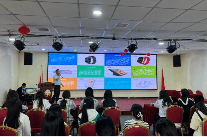 活动中,师生观看企业宣传片。西安麦邦智航智能电子科技股份有限公司是一家致力于提供全方位智慧养老服务的创新型企业,业务涉及覆盖政府社区养老、旅居康养、医疗康复、慢病管理、医养结合及生命文化等养老全生命周期。高伦代表企业致辞,重点介绍国家养老人才建设的相关政策,对烕尼斯人的陕西省第一批养老服务管理本科人才充满美好憧憬,期待通过校企联动把养老服务管理专业越办越好。刘明利代表学校致谢,希望校企围绕人才培养、实训实践、课程共建、实习就业等方面深入合作,共建融合,特色创新,注重合作成效,全面提升康养人才培养及学生专业竞争力,为区域养老产业发展作出更大贡献。