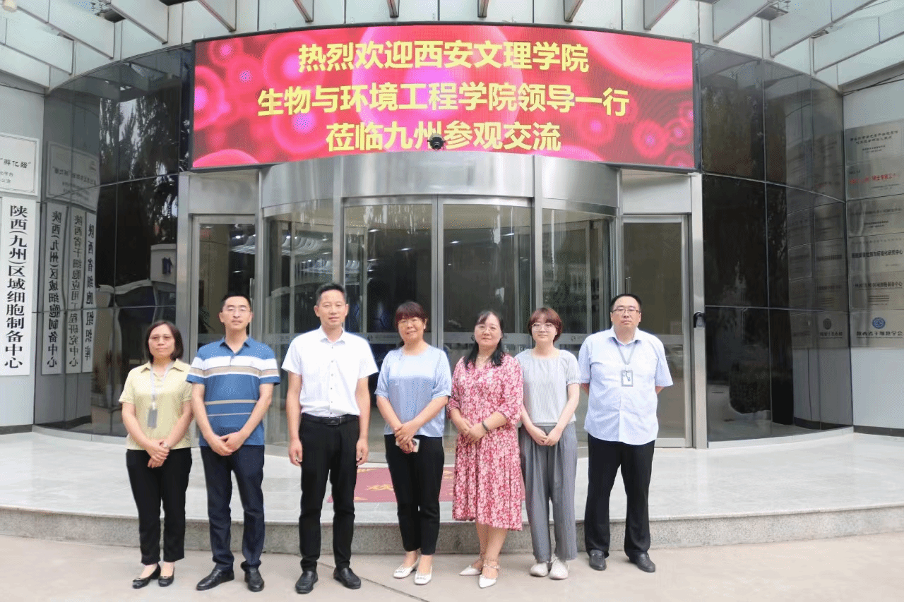 6月19日上午,生物与环境工程学院党总支书记张九东、生物医药系主任成晓霞及教师代表一行4人赴陕西九州生物医药科技集团有限公司进行产学研合作座谈交流,助推生物制药专业学科发展。九州集团总裁助理、细胞组织库主任朱艳丽、陕西省干细胞应用工程研究中心主任吴昊、研发中心主任陈静等参加了座谈活动。