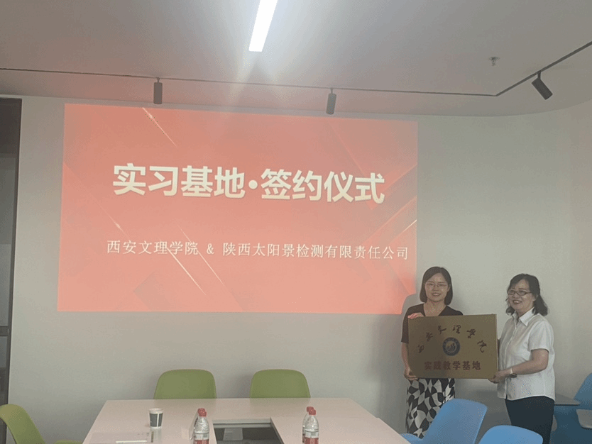 9月4日上午,化学工程学院与陕西太阳景检测有限责任公司实习基地签约挂牌仪式在太阳景公司会议室举行。太阳景公司质量总工程师魏莉娟、环境总工程师黄静瀛、人资经理李亚川等及化学工程学院教学副院长宋瑞娟教授、应用化学系主任贾园副教授、实习指导教师师白梅、辅导员教师李晨妤参加了此次会议。