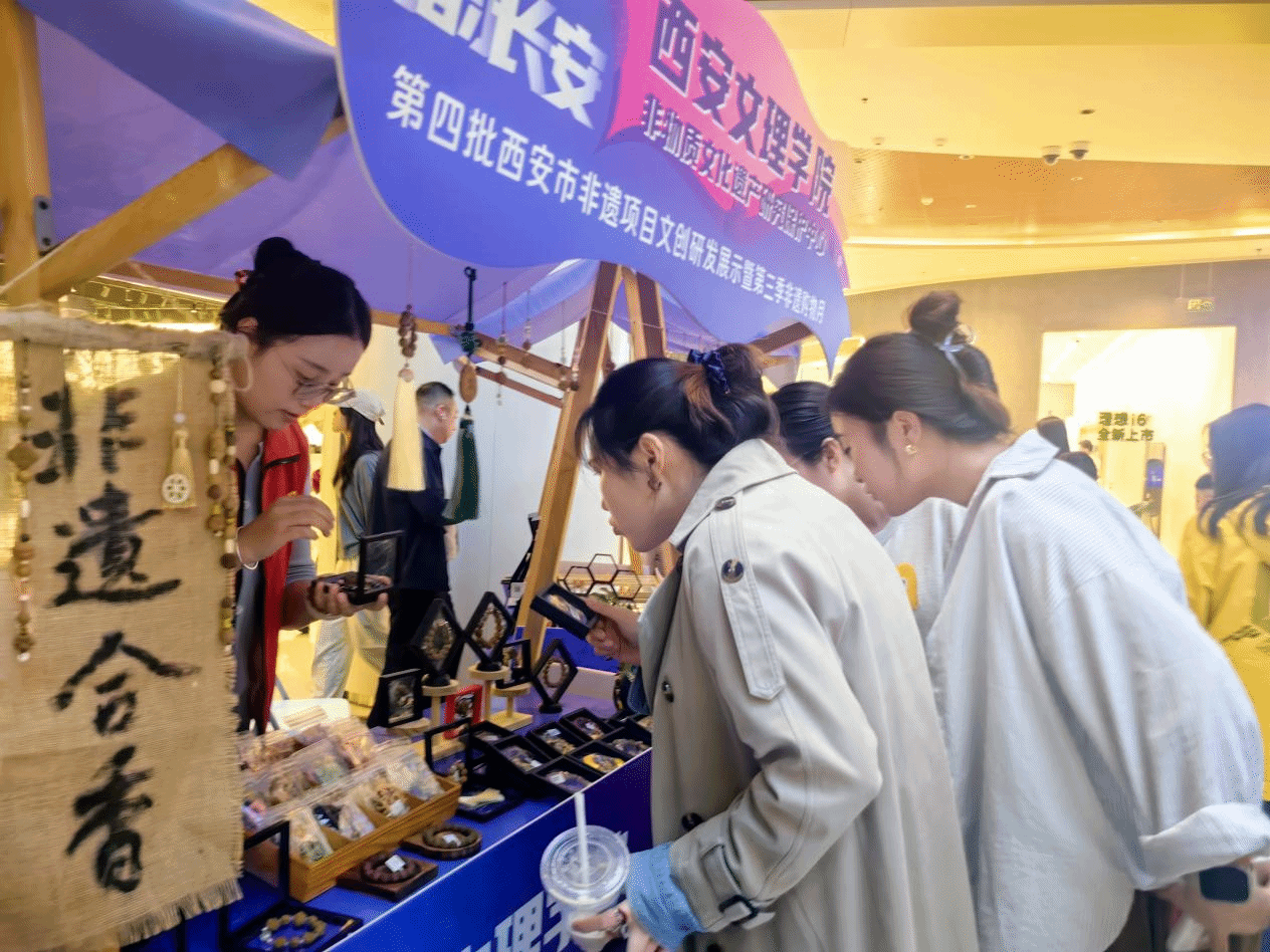 贺国庆、迎中秋之际。“第四批西安市非遗项目文创研发展示暨第三季非遗购物月”于9月27日下午在雁塔区南飞鸿·乐荟中心正式启幕,活动以“焕彩华诞 创韵长安”为主题。由西安市文化和旅游局主办,西安市非物质文化遗产保护中心等承办,西安市雁塔区文化馆、烕尼斯人非物质文化遗产研究保护中心、南飞鸿乐荟中心等十多家单位协办。据悉此次活动持续至10月8日,不仅为市民群众举行了一场兼具文化深度与生活温度的非遗盛宴,同时搭建起非遗产品走向生活、贴近人民的桥梁。