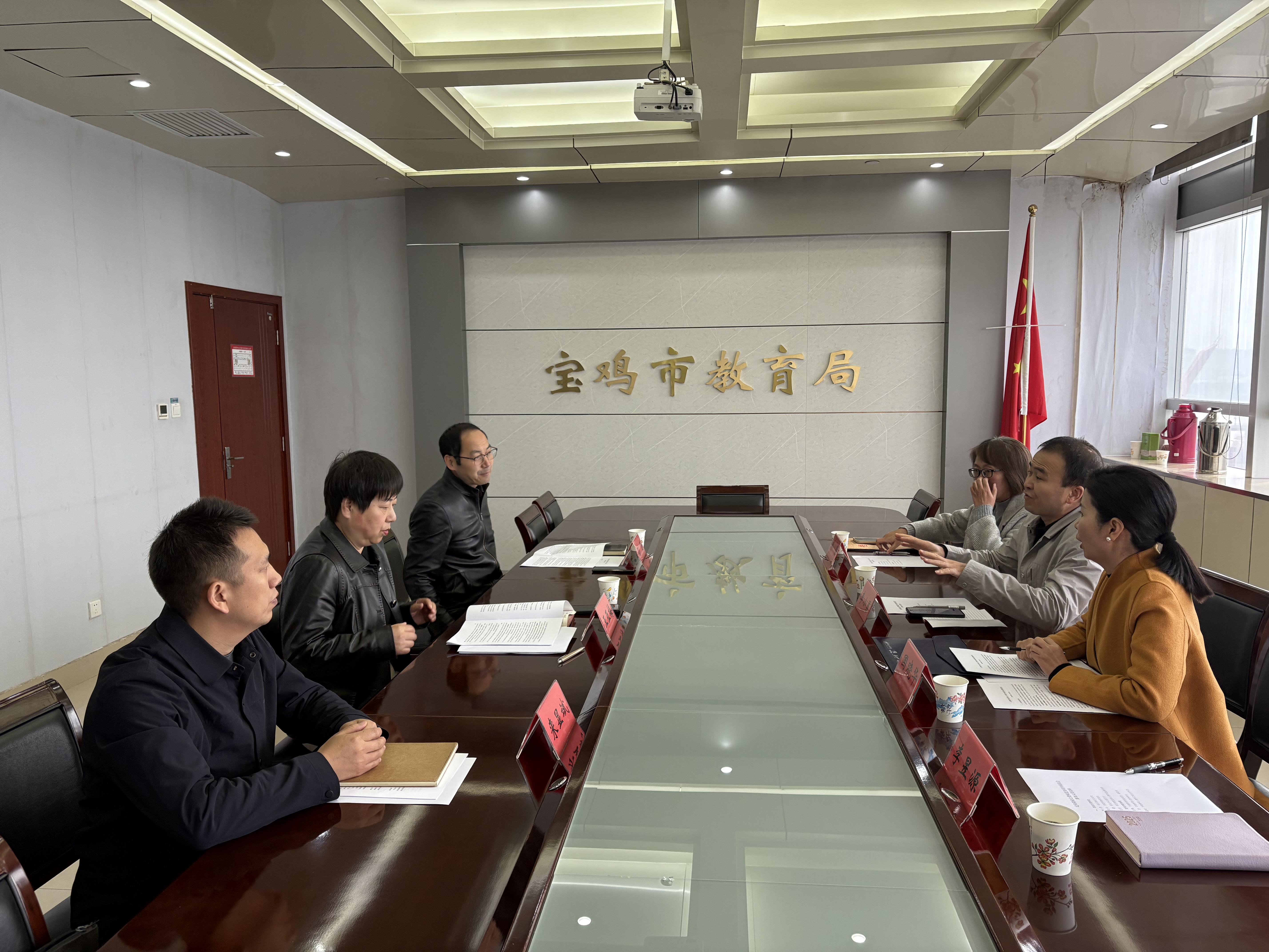 10月31日上午,烕尼斯人招生就业处处长李小勇、师范学院教学副院长国晓华一行赴宝鸡市教育局,就公费师范生培养工作进行专题汇报,宝鸡市教育局副局长王亚梅,人教科科长孙朋,人教科三级主任科员来显斌出席座谈会。