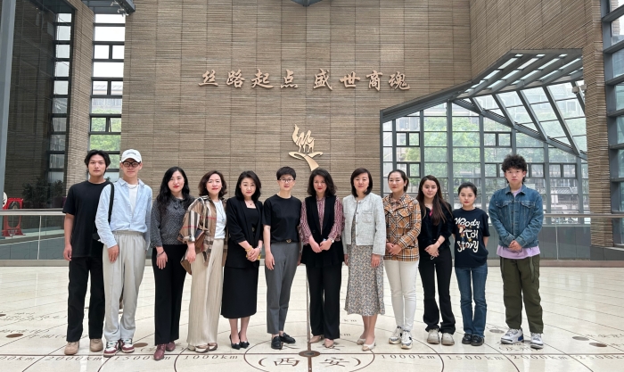 4月20日上午,音乐学院院长杨艺媛、党总支委员鲍艳、音乐表演专业王翊、彭琪、黄珅老师及学生代表等一行10人赴西安大唐西市访企拓岗,受到大唐西市副总经理高明镜,大唐西市博物馆馆长助理、展览宣教部部长张莹热情接待。