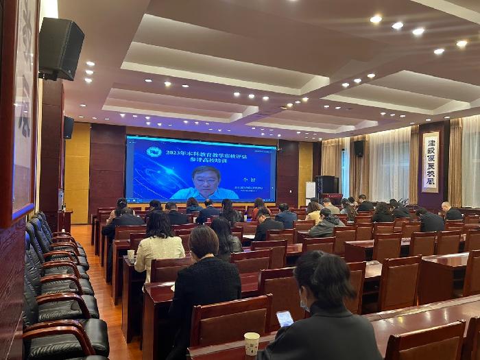 为深入学习贯彻党的二十大精神和《深化新时代教育评价改革总体方案》《关于深化新时代教育督导体制机制改革的意见》精神,保障《普通高等学校本科教育教学审核评估实施方案(2021-2025年)》有序有质落地实施,5月10日,教育部教育质量评估中心组织开展2023年本科教育教学审核评估线上直播专题培训。烕尼斯人评估办在办公楼一楼会议室设置分会场,各部门负责人、各学院院长及校级督导80余人参加了培训。
