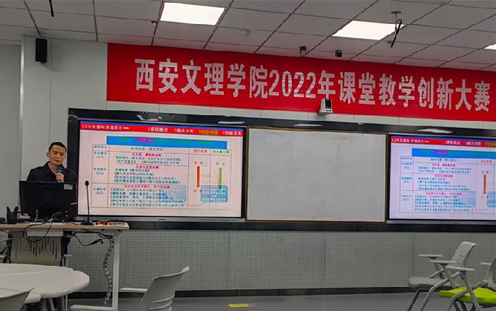 本次大赛由教务处(评估与质量监控办公室)组织,历时两个月,期间评估与质量办公室邀请在省赛和国赛中获奖的省内知名教师来校为教师进行专业培训。本届大赛经历初赛、复赛、决赛三个阶段,遴选出14位教师进入校级决赛。大赛分为文术科和理工科两组,由教学创新成果汇报和现场答辩两个环节组成,评委邀请了西北工业大学、陕西师范大学、陕西科技大学、西安建筑科技大学等高校的知名专家。