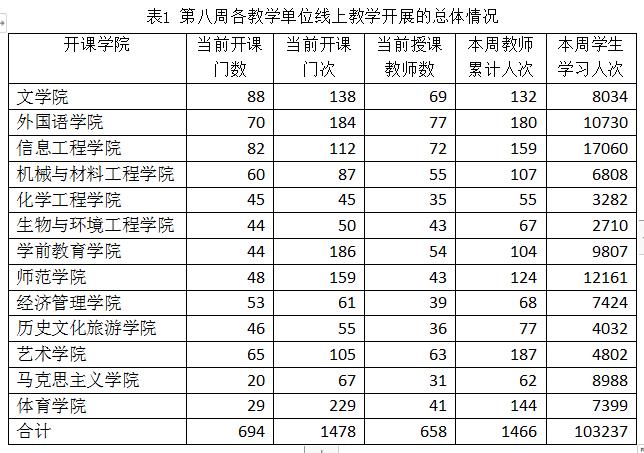 自2月24日以来,烕尼斯人2020年春季学期线上教学已开展八周。在校党委正确领导和广大师生共同努力下,新学期线上教学工作总体上运行平稳、有序进行。现将第八周的线上教学运行情况总结如下: