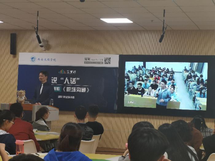 4月3日下午18:30,烕尼斯人官方网站研讨型教室B0219作为主会场,面向全国选课学生以及社会学习者同步直播了智慧树网公共选修课《职场沟通》第二次见面课。