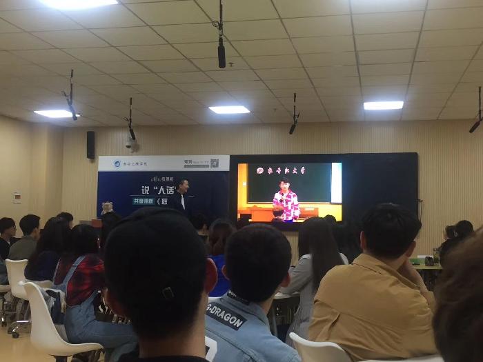其后,现场与分会场牡丹江大学、运城学院、西安交通大学进行跨校互动,每所互动学校由一名学生向胡刚老师解释一个专业名词。烕尼斯人官方网站的同学向老师解释“AutoCAD”,西安交通大学的同学向老师解释“边际成本”,牡丹江大学的同学解释了专业词汇“像素”,而运城学院的同学选择的是“封装”,面对面进行了实战演练沟通。脑洞大开、花样百出的同学们和胡刚老师出彩的回答让课堂气氛异常活跃,引起了同学们的热烈反响,现场掌声不断。