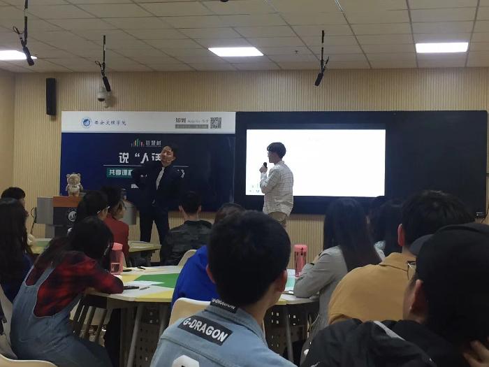 胡刚老师从心理学角度进行分析,结合实例,不断加深同学们的理解。在现场和同学们使用APP互动,启发大家沟通是需要不断练习和修炼才能得到真正的提升。