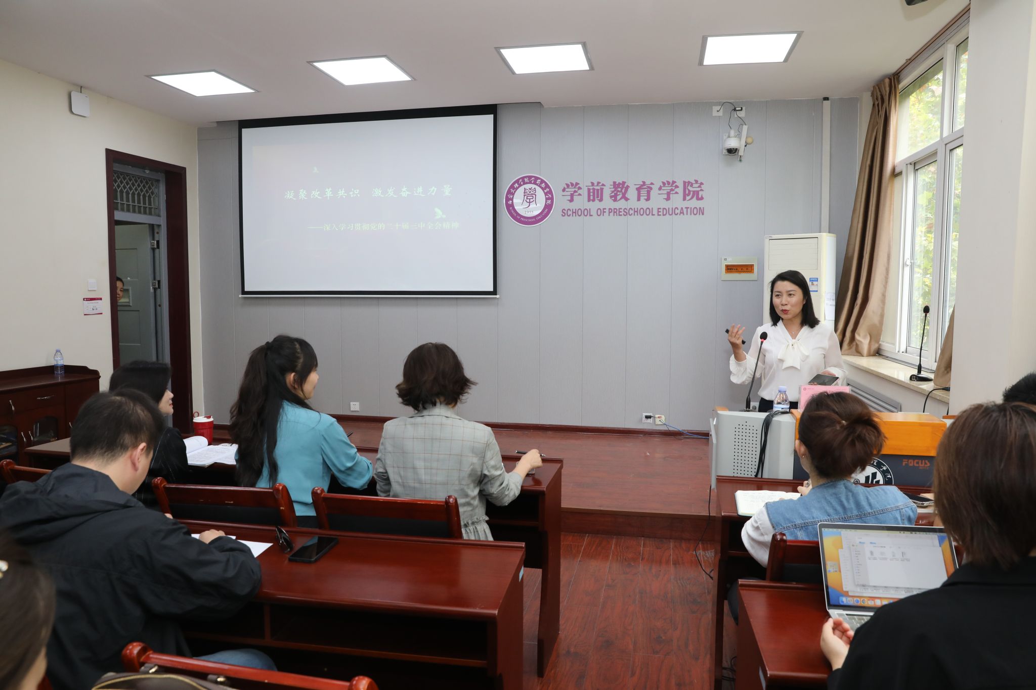 最后,刘爱霞总结强调,全院师生党员要紧密结合实际,推动党的二十届三中全会和全国教育大会精神入脑入心,发挥学科专业优势,培养高质量学前人才,为进一步全面深化改革、推进中国式现代化建设贡献力量。