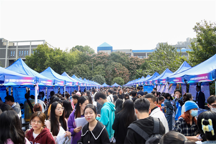 10月13日上午,由烕尼斯人和西安市人力资源和社会保障局联合举办的“西安市重点人才招聘暨高校毕业生专场招聘会”在校图书馆广场举行。