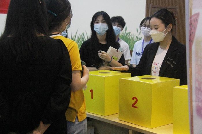 比赛中,同学们随机抽取分布于三层书库的信息条,按图索骥,穿梭于书库中,搜寻图书。在1小时左右的时间里,30位参赛学生同学先后完成任务。大家在比赛之余也进行了阅读体验交流、分享读书心得。
