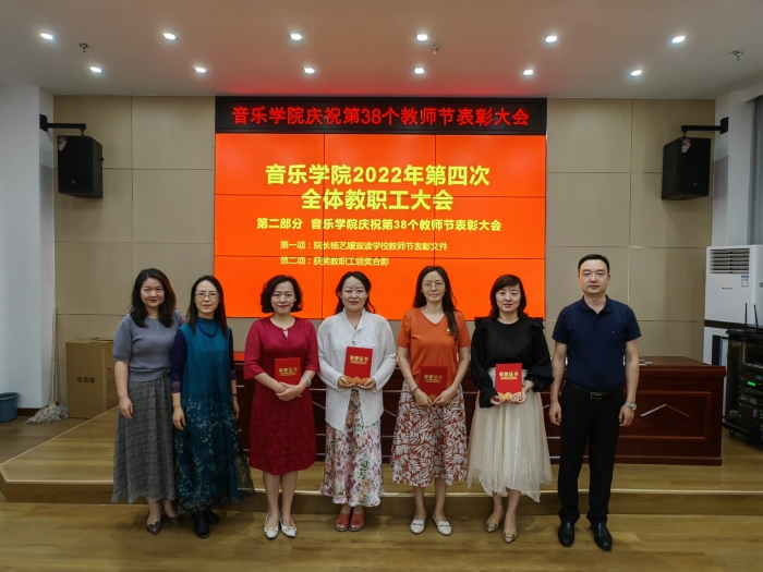 会议表彰了学院优秀教师。院长杨艺媛宣读学校教师节表彰文件,并对受到表彰的先进教育工作者、优秀教师颁奖。音乐学系主任郭瑞玺通报教学相关工作。副院长贺星通报暑假期间科研完成情况,并部署后期科研工作。院长杨艺媛再次明确开学工作要求及疫情防控注意事项,强调学院上下要以建设“最懂西安的城市大学”及坚决落实党委“七个五”战略部署为目标开展工作。