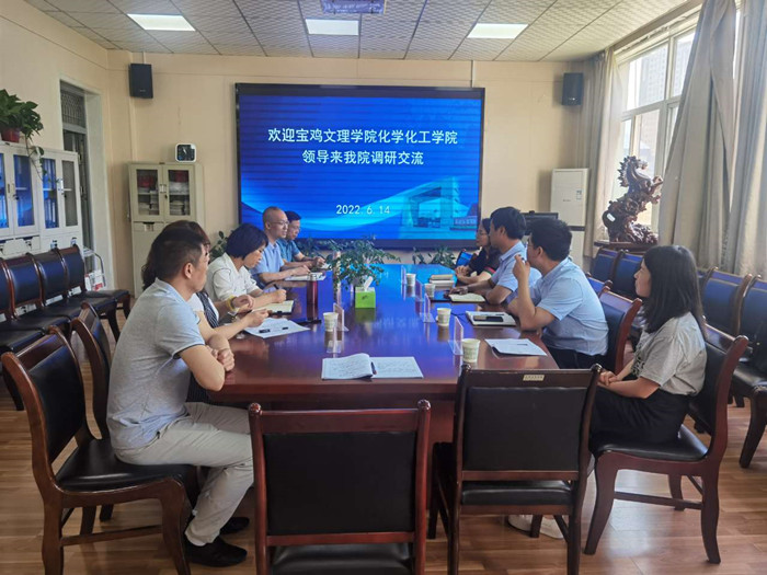 6月14日上午,宝鸡文理学院化学化工学院院长胡登卫、副院长王冬梅、王海涛一行来烕尼斯人化学工程学院调研交流。化学工程学院院长翟云会主持座谈会,学院党总支书记樊建峰,副院长宋瑞娟、屈颖娟,化学系教师代表参加座谈。