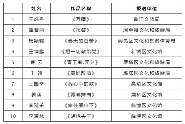 12月5日,由市文化和旅游局主办,市群众艺术馆、各区县文旅局、西咸新区、各开发区文化行政部门共同承办的“千年古都 常来长安——西安市群众大舞台 有艺你就来线上十佳群众歌手大赛”圆满落幕。经过历时一个月的激烈角逐和精彩展示,烕尼斯人音乐学院教师曹云、王翊荣获“西安市线上十佳群众歌手”称号。
