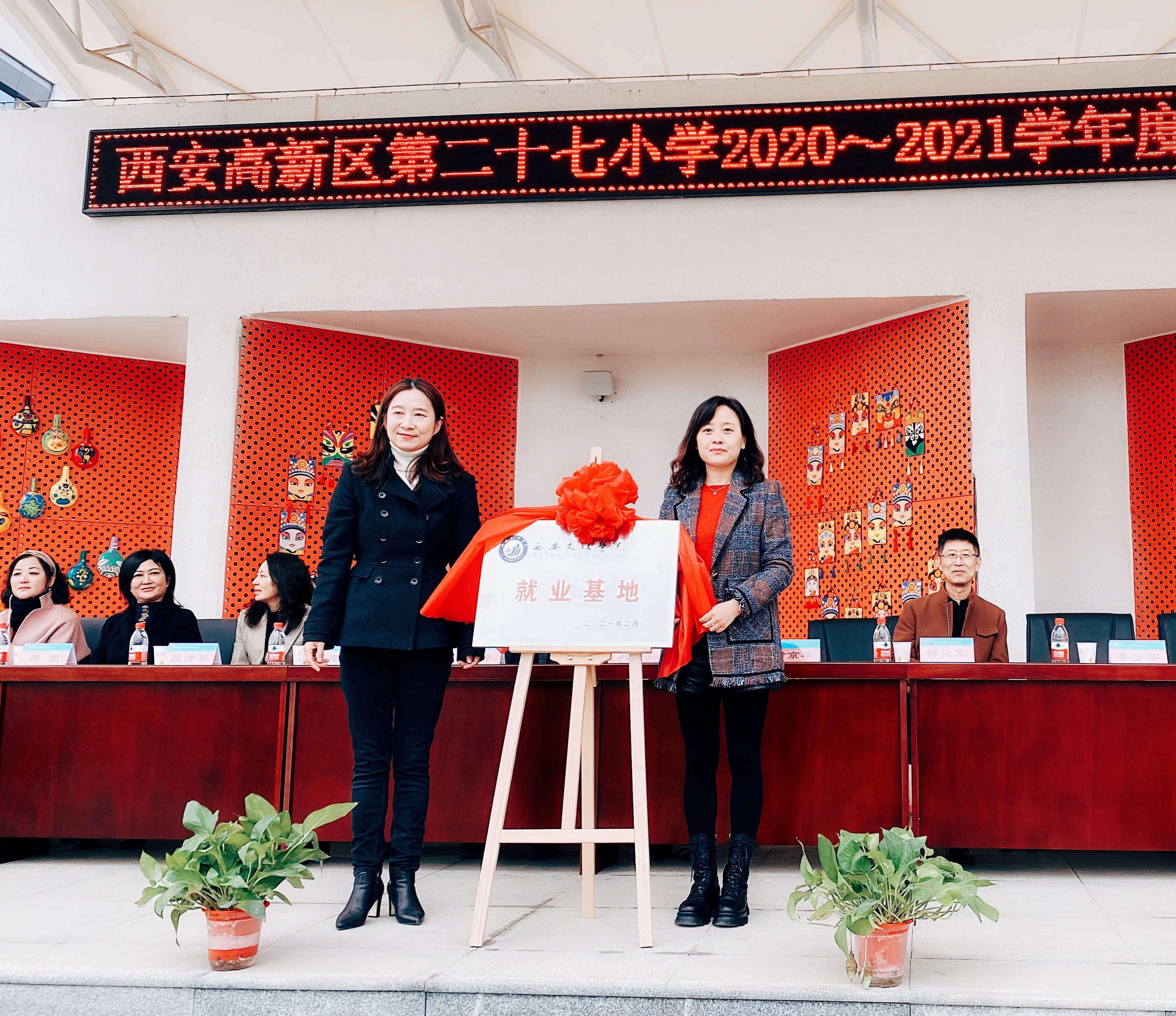 3月6日上午,文学院院长郝延军、党总支副书记李莎莎及副院长苏羽赴西安市高新区第二十七小学参加开学典礼,并为文学院与该校共同建立的“教育实践基地”及“就业基地”揭牌。