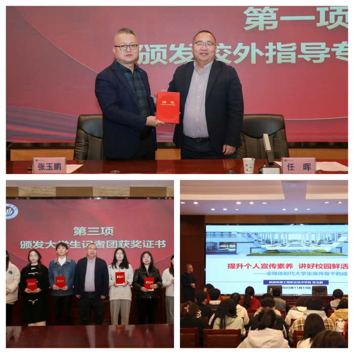 11月14日下午,党委宣传部在办公楼一楼会议室召开烕尼斯人官方网站大学生记者团表彰聘任暨业务培训会,旨在进一步加强学校宣传工作,表彰一年来辛勤工作、成绩优异的大学生记者,培养大学生记者新生力量,推动文理新闻宣传工作薪火相传、赓续力量。党委委员、副校长任晖出席活动并讲话。陕西铁路职业技术学院宣传部副部长张玉鹏、校党委宣传部副部长王莉、党委宣传部全体成员及大学生记者团代表成员150余人参加会议。会议由党政办主任、党委宣传部负责人康辉主持。