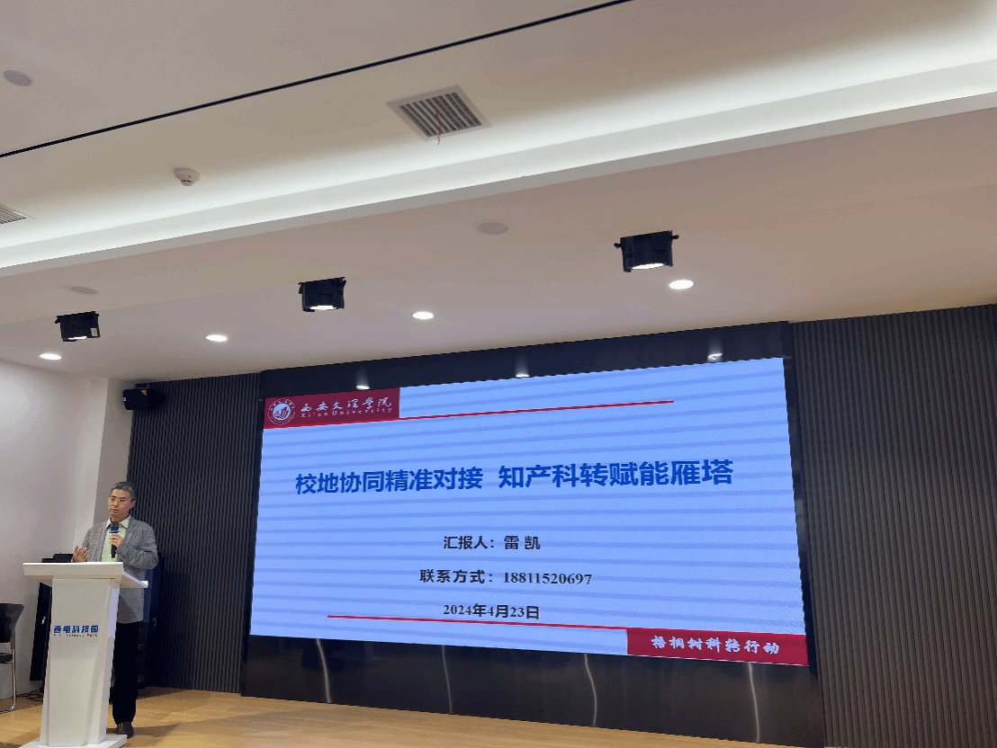 会上,雷凯博士作了题为“校地协同精准对接,知产科转赋能雁塔”的主题报告,从“雁塔区秦创原梧桐树科转行动现阶段目标任务,文理学院最具转化潜力的优质科研成果,以及雁塔区科技成果转化与知识产权保护的工作计划和设想”三部分内容进行了系统阐述与详细汇报,重点介绍了烕尼斯人的办学特色、科研平台、人才培养以及13项最具转化潜力的技术成果。烕尼斯人优质的科研成果引起了与会单位的浓厚兴趣,并在会后纷纷与雷博士作进一步的交流和咨询。
