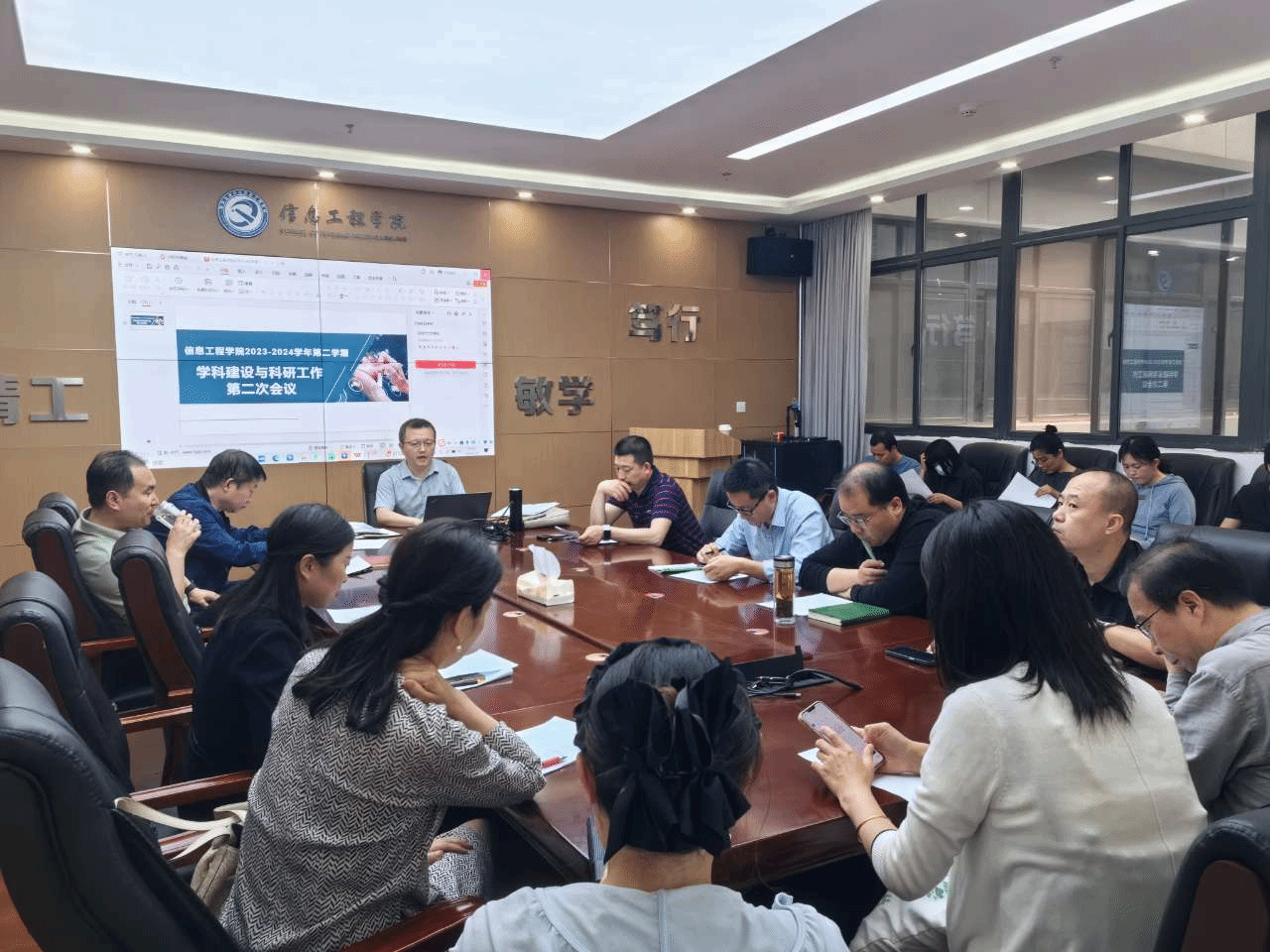 5月8日下午,信息工程学院召开2023-2024学年第二学期第二次学科建设与科研工作会议。学院学术委员会委员,专业学位硕士点建设团队全体成员,省市级科研平台负责人,校级科研团队负责人,各系和教研室主任,两办一中心负责人及新进教师参加会议。会议由副院长冯永亮主持。