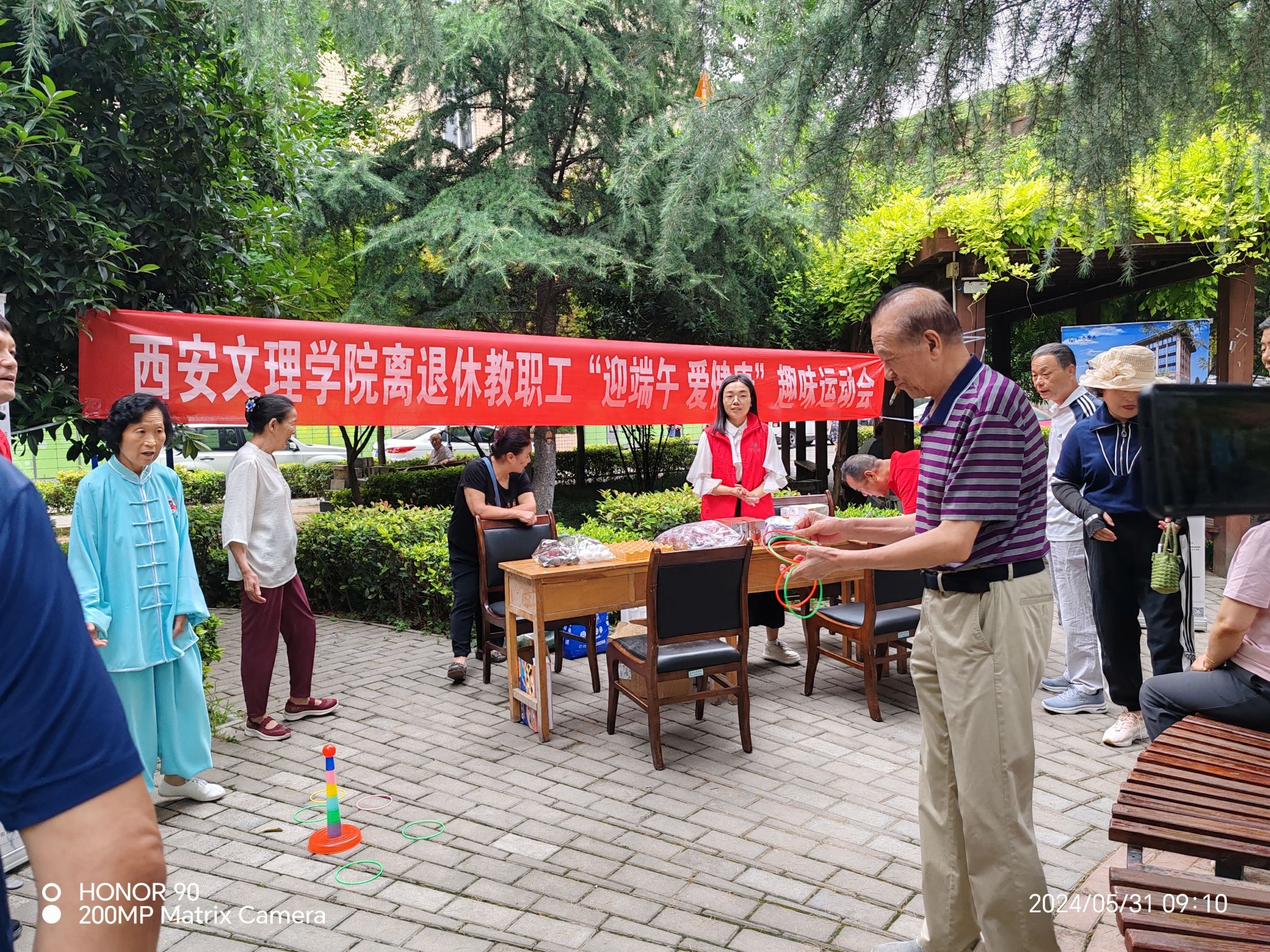 5月31日上午,风清气朗,阳光明媚,在端午佳节来临之际,为了丰富离退休教职工精神文化生活,增进相互交流与友谊,促进和谐邻里关系,倡导健康生活方式,烕尼斯人在太白校区举办了“迎端午 爱健康” 离退休教职工趣味运动会。