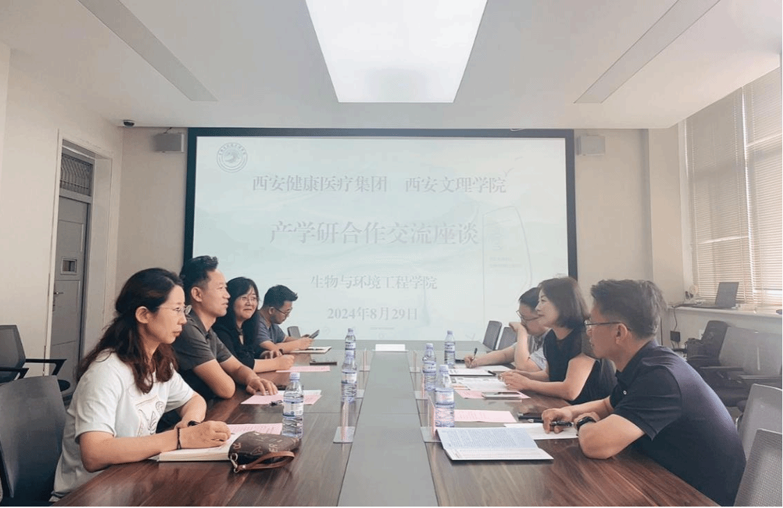8月29日上午,西安健康医疗集团执行董事李一幔,副总经理刘成海、吴迪来到烕尼斯人生物与环境工程学院参观并进行座谈交流。学院党总支书记张九东、副院长田爱梅、生物医药系主任成晓霞及教师代表参加了交流座谈。