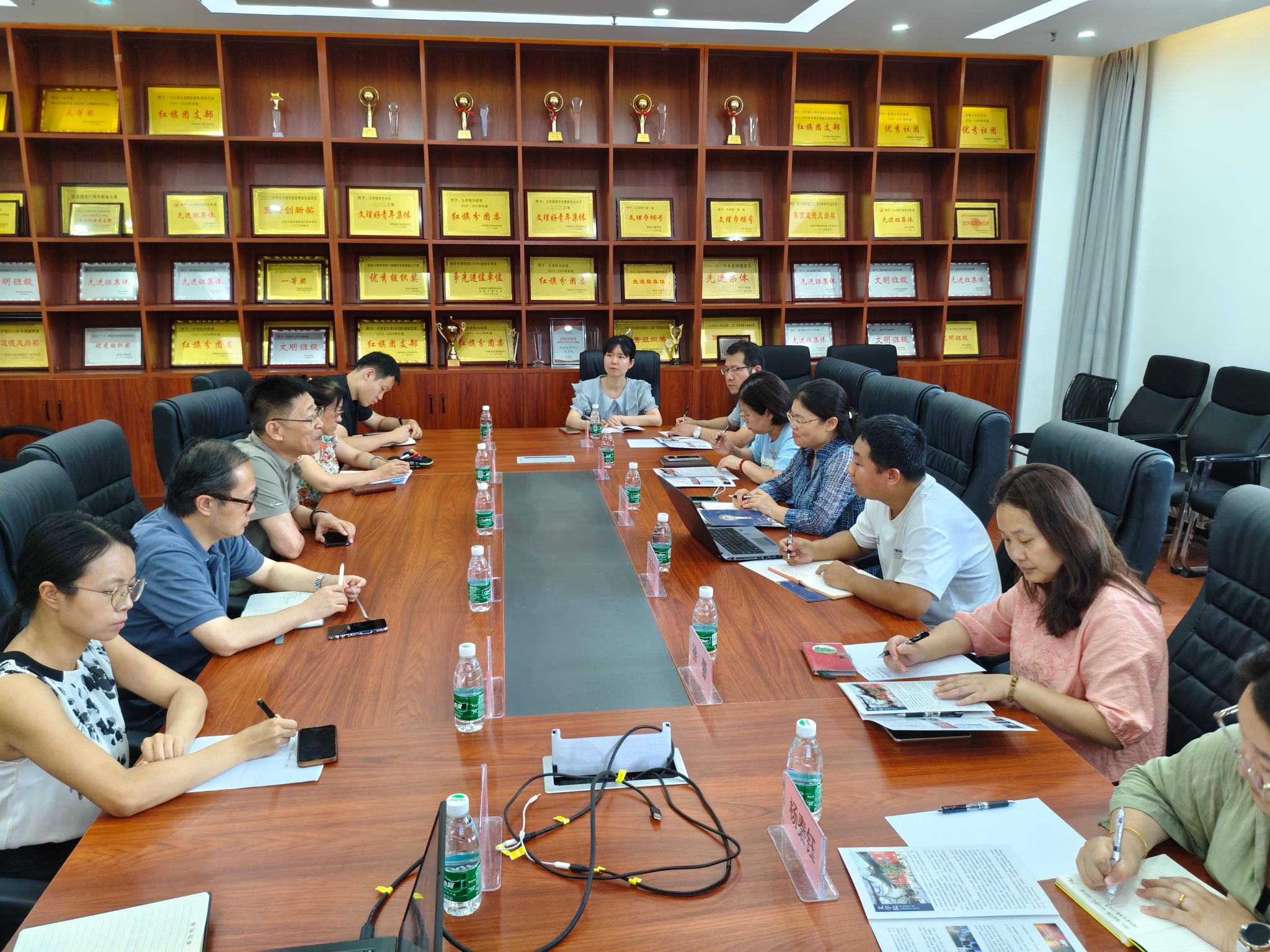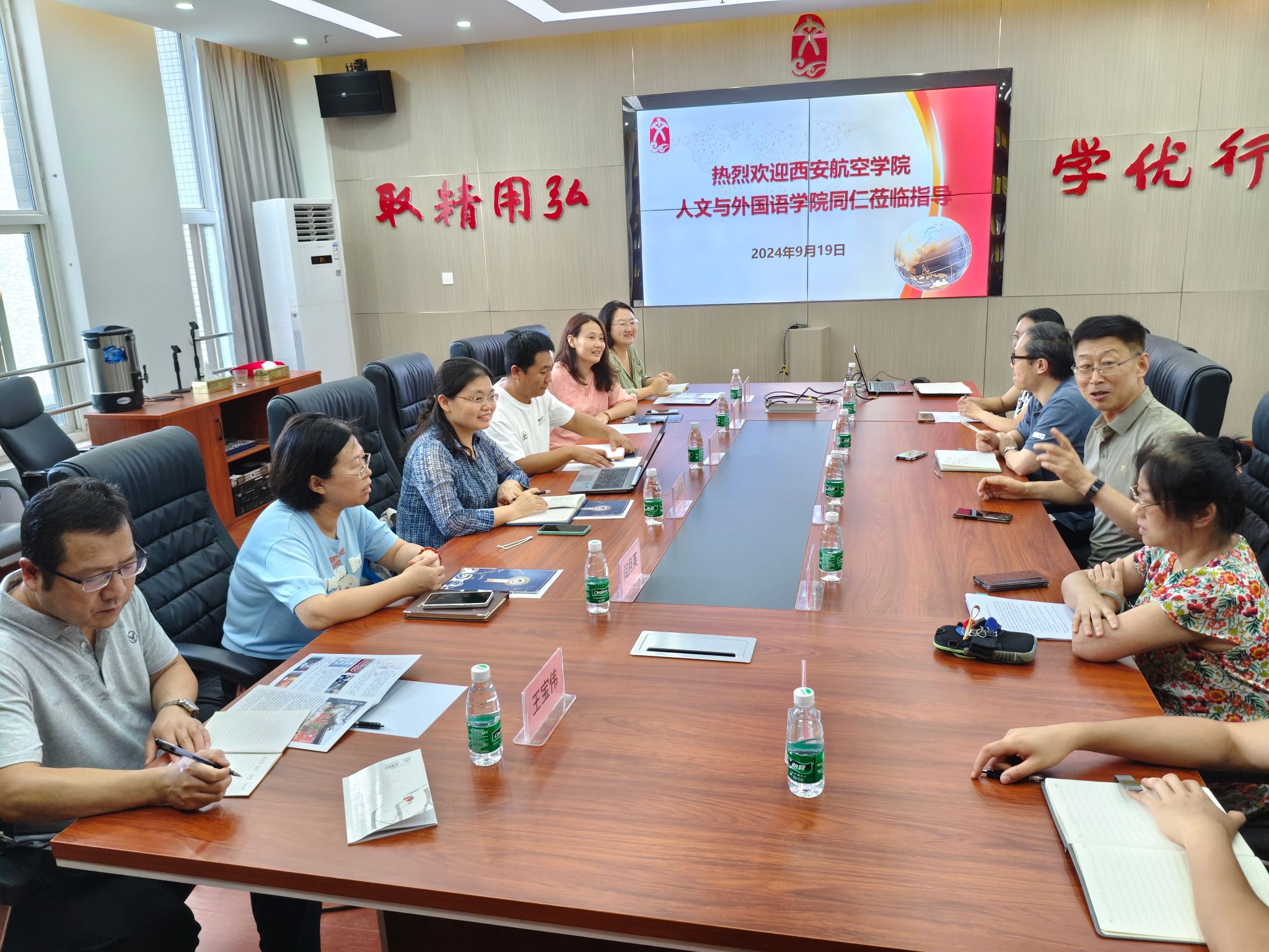9月19日下午,西安航空学院人文与外国语学院副院长梁春燕、院长助理元文广、秘书学专业教研室主任闫月英、徐蕾等一行赴文学院调研,文学院院长郝延军、副院长苏羽、秘书学系主任苏志敏及部分专业教师、辅导员参与座谈交流。