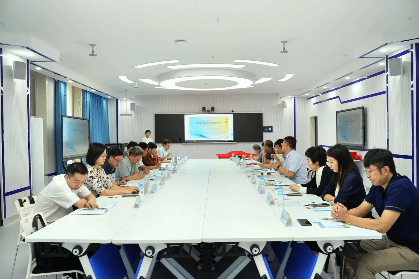 开幕式上,教务处处长蔡军在致辞中介绍了烕尼斯人教育教学,特别是教材资源建设方面取得的突出成绩;暨南大学出版社总编辑张丽军教授介绍了《丝路汉语系列教材》的出版发行的相关情况;陕西师范大学裴亚莉教授高度评价了教材,并针对教材叙事、内部结构编排等提出了参考建议。在发布式上,董洪杰教授作为主编介绍了教材总体情况;各分册主编分别介绍了8册教材的特点。随后,蔡军教授和郝延军院长为教材揭幕;俞华处长、刘卫利馆长为参与项目的各高校和专家赠送了教材。最后,与会专家学者围绕国际中文教材的编写和使用以及未来发展建言献策,进行了深入的探讨,对丝路系列汉语教材提出了宝贵建议。