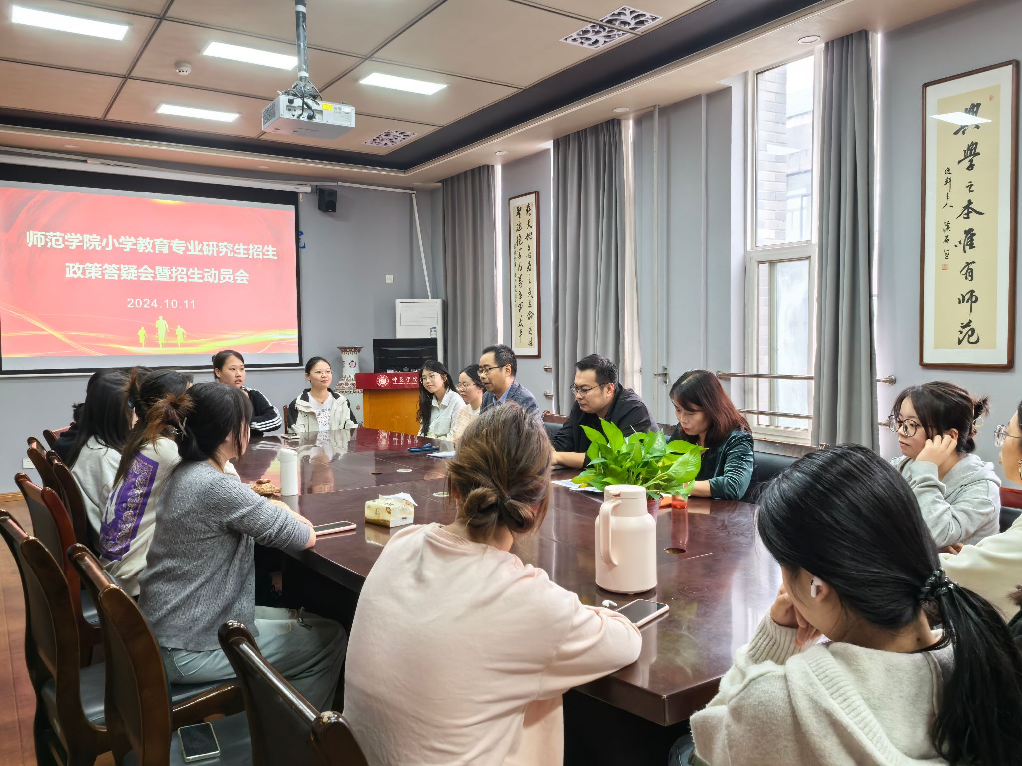 11月10日下午,师范学院组织温馨慰问活动,本次活动旨在为正处于紧张备考阶段的考研学子们提供最强有力的支持与鼓励,帮助他们以更加坚定的步伐迈向梦想的彼岸。活动在明德楼B0312会议室温馨开幕,学院党总支副书记李承、副院长李晶以及小学教育系主任闫成海亲临现场,他们不仅传达了学院对考研学子的深切关怀与殷切期望,还就考研策略、心态调整及学习方法给予了宝贵的意见和建议。
