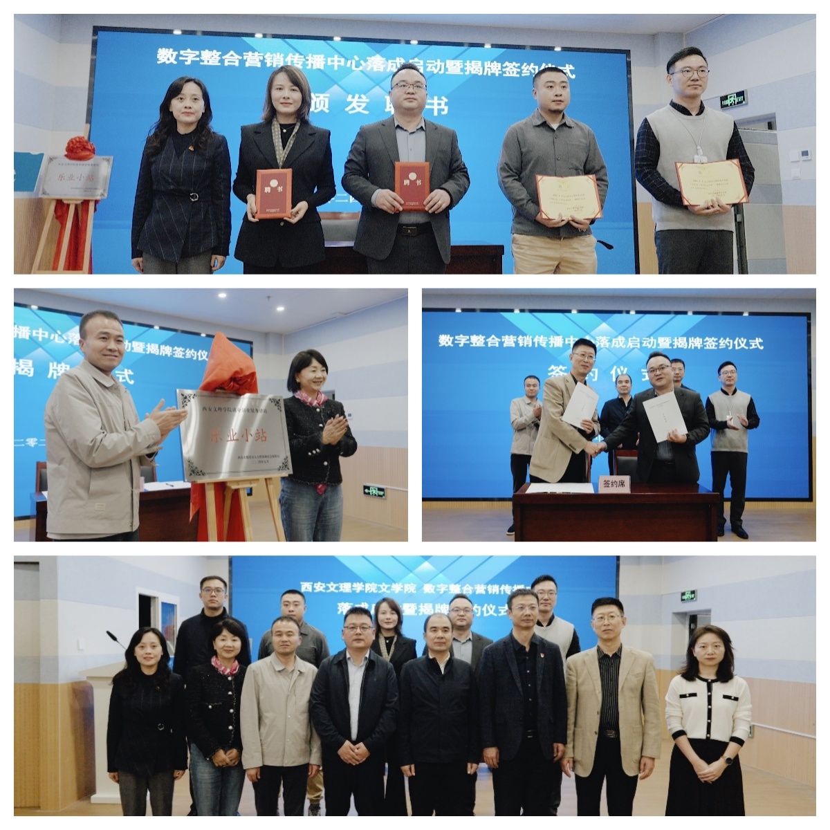10月30日下午,文学院在明德楼C0415举办数字整合营销传播中心落成启动暨揭牌签约仪式。校党委委员、宣传部部长、服务地方办主任田建邦,教务处处长蔡军,招生与就业处处长李小勇,文学院院长郝延军、党总支书记李莎莎,及西安市雁塔区人社局副局长马如愿、人才服务中心主任郭瑛,眸数字(西安)智慧科技有限责任公司董事长冯浩、陕西金海豚传媒科技集团有限公司总经理孙晓辉等出席仪式。仪式由文学院广告学系主任张倩主持。