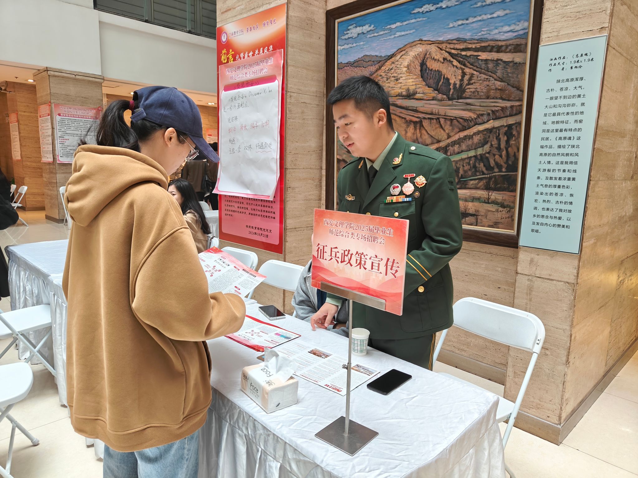 同时,招聘会现场还设置了包括“征兵宣传”、“简历门诊”等在内的多个功能区,为毕业生同学们提供全方位的招聘会服务。在“征兵宣传”专区,烕尼斯人优秀退伍学生手持征兵政策宣传手册,为有意征兵入伍的同学,介绍入伍政策和发展前景,让毕业生同学深入了解不同就业渠道。