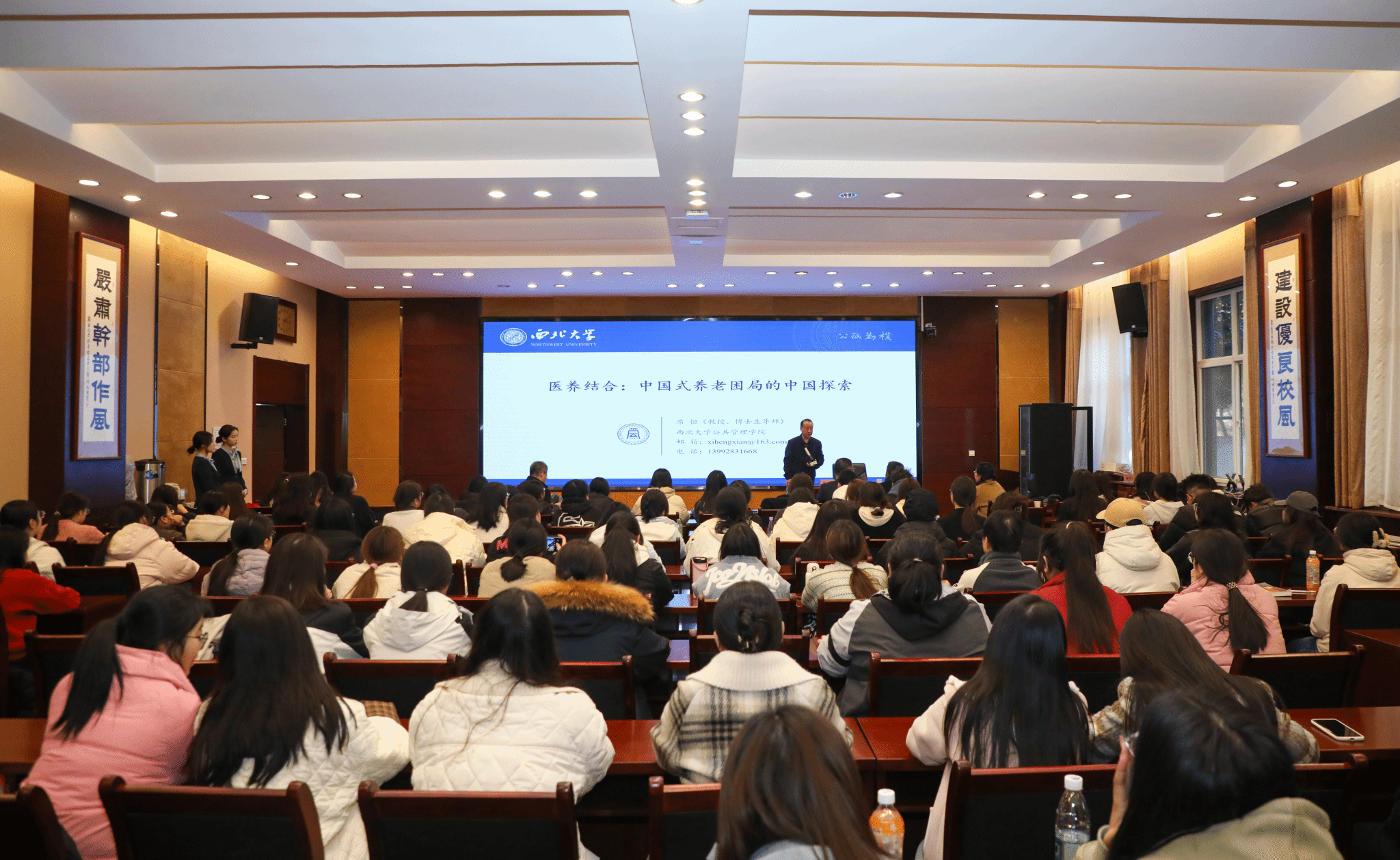11月27日,经济管理学院“七个五”首席专家、西北大学公共管理学院二级教授、“三秦学者”席恒教授莅临烕尼斯人指导养老服务管理专业建设工作,并作“医养结合:中国式养老困局的中国探索”专题讲座。副校长刘明利、经济管理学院党总支书记陈沛、副院长董冠华、贺志武及养老服务管理专业全体师生参加指导交流会。会议由经济管理学院院长闫荣国主持。