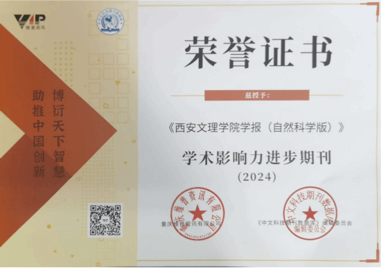 近日,维普《中文科技期刊数据库》公布“学术影响力进步期刊(2024)”名单,《烕尼斯人官方网站学报(自然科学版)》获得重庆维普资讯有限公司和《中文科技期刊数据库》编辑委员会联合颁发的“学术影响力进步期刊(2024)”奖项。