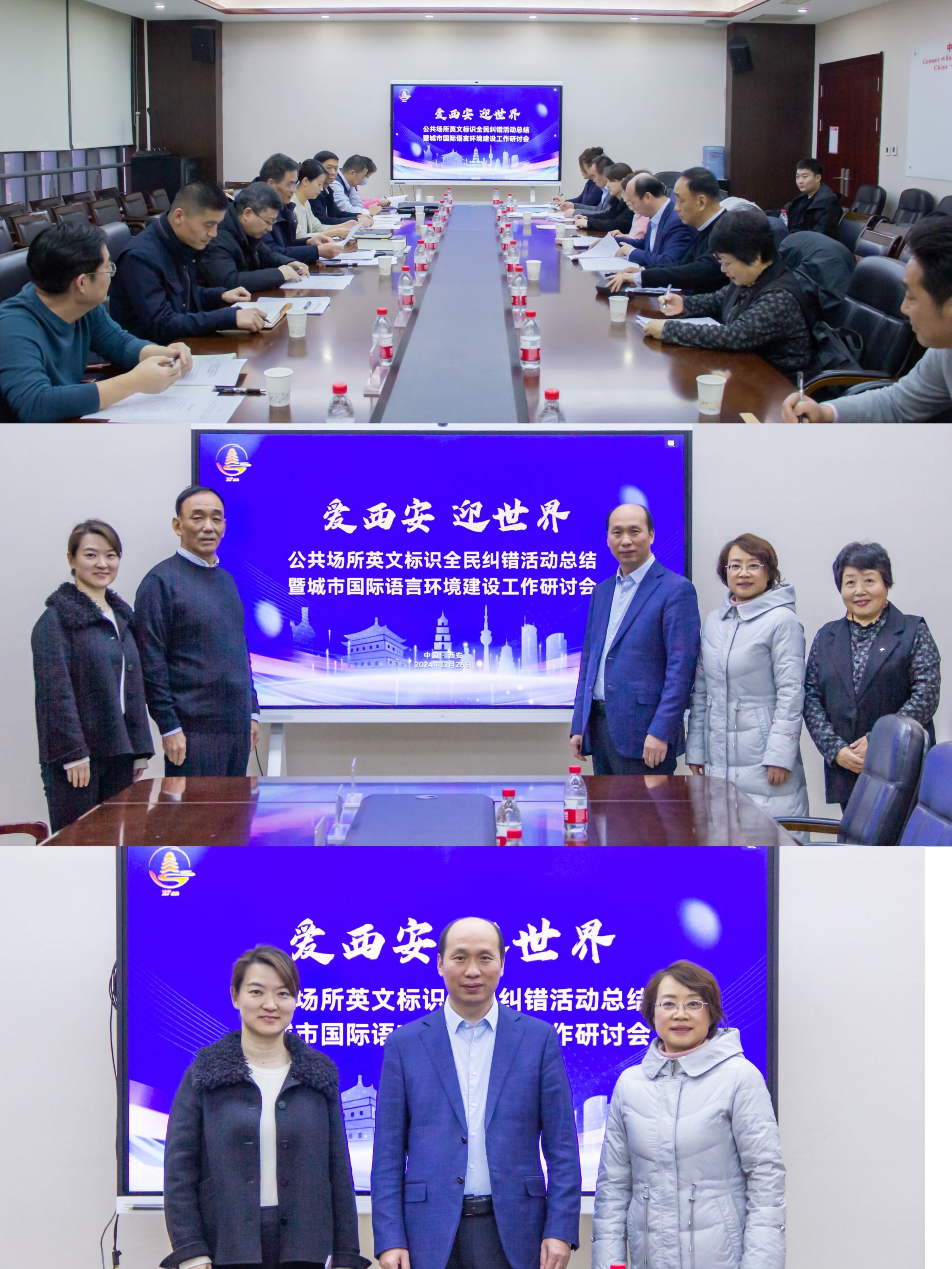 为优化全市国际语言环境,进一步提升城市精细化管理与服务水平,助力国家中心城市和国际化大都市建设,更好地服务中国-中亚峰会、丝博会、欧亚经济论坛等国家和城市重大活动,12月26日下午,“爱西安 迎世界”公共场所英文标识全民纠错活动总结暨城市国际语言环境建设工作研讨会在市委外办二楼会议室隆重召开。市委宣传部、市外办、市教育局等市属单位、高校专家代表、烕尼斯人外国语学院院长韩红建、杨红梅教授等出席研讨会。会议由市对外友好协会专职副会长张勇主持。