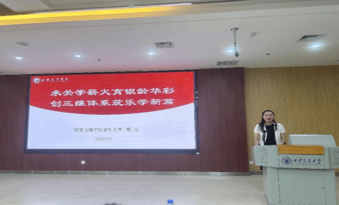 在交流发言环节,郑旻作了以《承关学薪火育银龄华彩 ,创三维体系筑乐学新篇》为题的交流发言。她从烕尼斯人办学的深厚历史渊源关学文化讲起,介绍了学校城市大学办学定位,在文化传承创新,服务区域社会,助力终身教育体系建设方面所做的工作,回顾了烕尼斯人老年大学创办以来的发展历程、办学特色,总结为“三维四化”办学体系的成功实践,并表示烕尼斯人老年大学以此为契机,进一步提升办学水平,为陕西老年教育事业繁荣贡献更多文理力量。