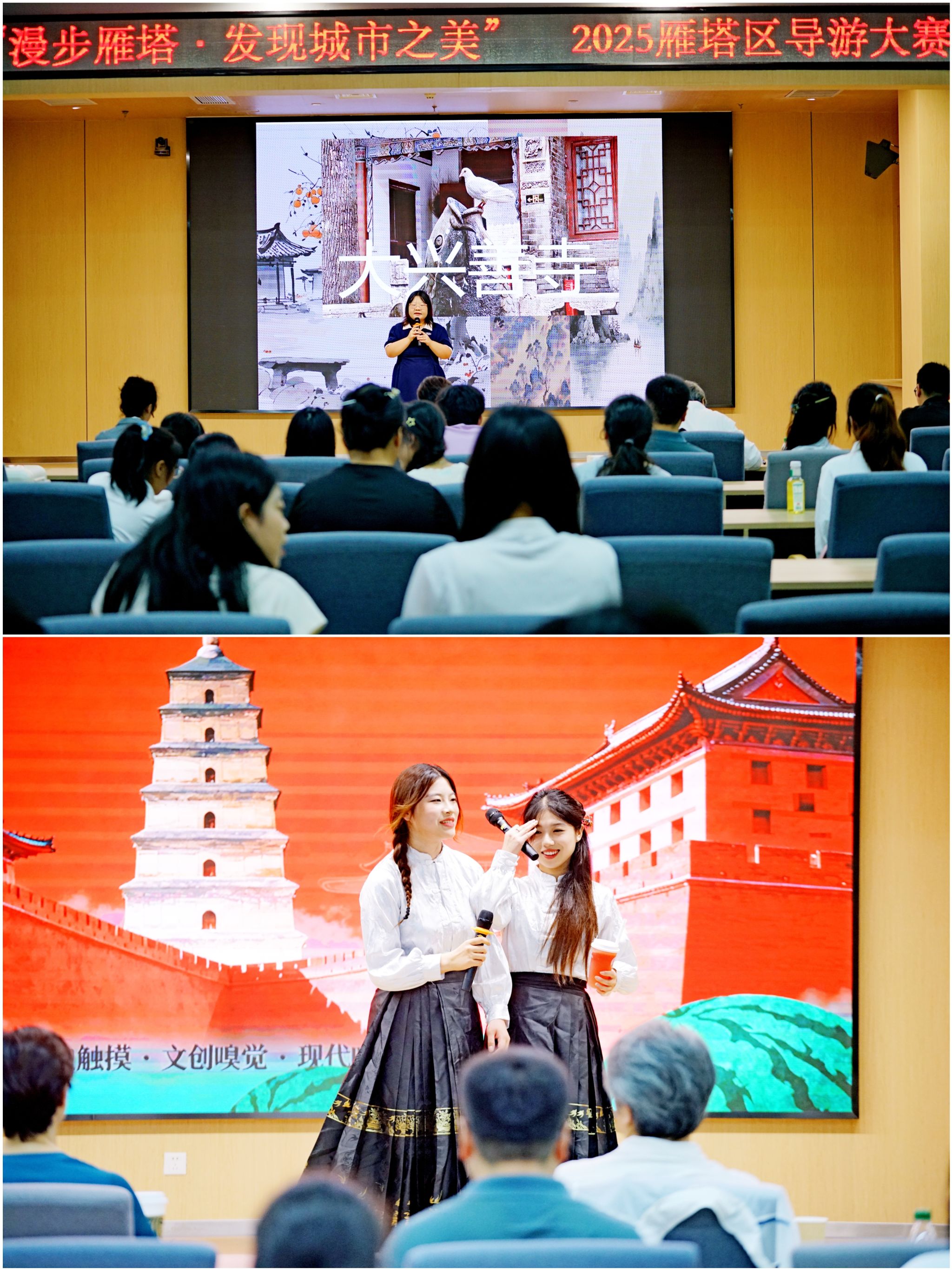 9月13日,由雁塔区文化和旅游体育局、雁塔区教育局主办,雁塔区旅游协会、雁塔区图书馆、雁塔区文化馆承办的“漫步雁塔·发现城市之美”2025雁塔区导游大赛决赛在雁塔区旅游协会举行。历史文化旅游学院教师王晓乐、丁贵金指导旅游管理专业两个团队学生进入决赛。
