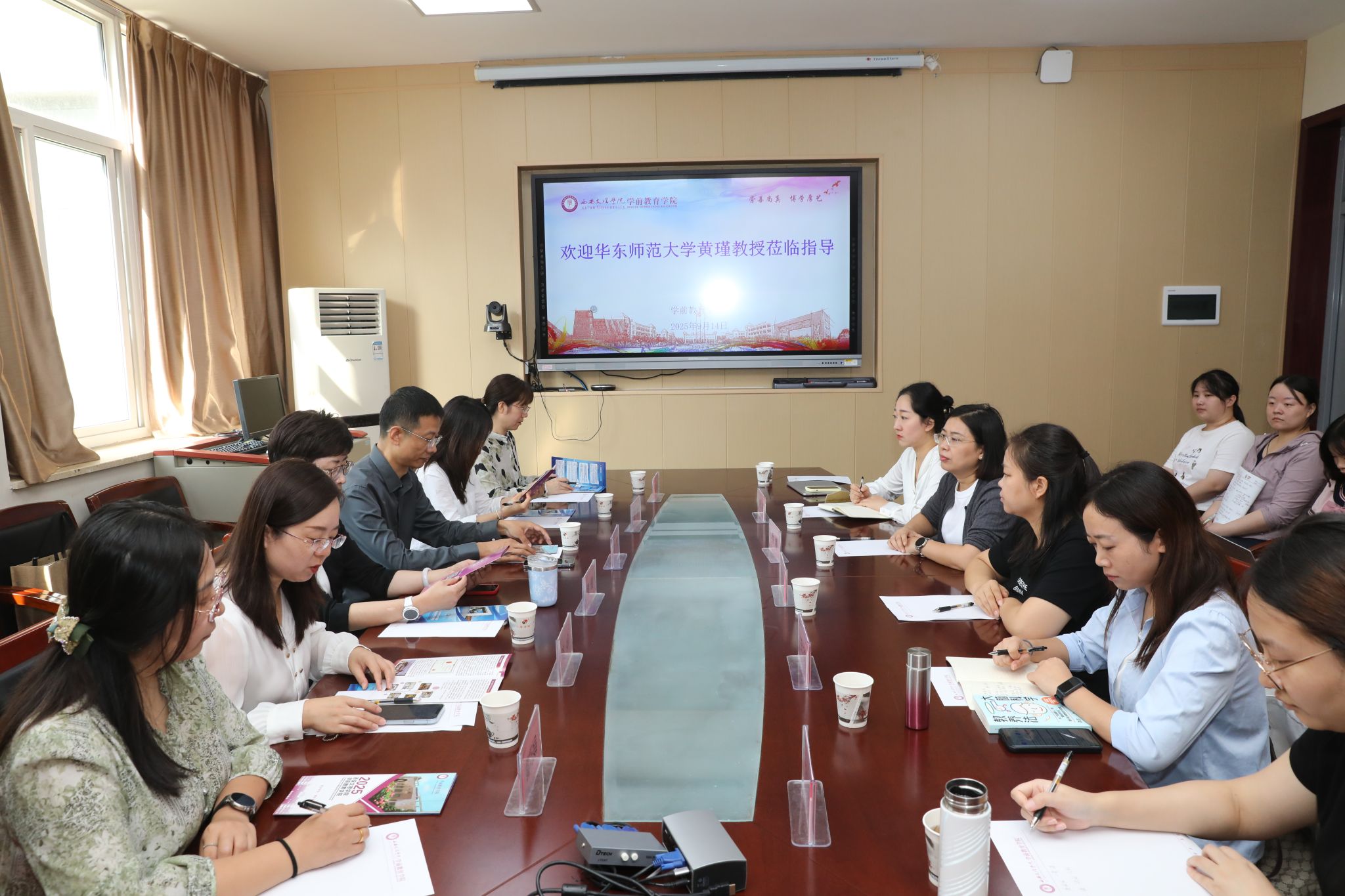9月14日,学前教育学院特邀中国教育学会学前教育专业委员会理事长、华东师范大学教育学部党委常务副书记黄瑾教授莅临指导工作。学校教务处处长蔡军,学前教育学院院长路娟、副院长雷巧娟、科研工作负责人蔺素琴、教师代表和2025级全体研究生参加了会议,会议由路娟主持。