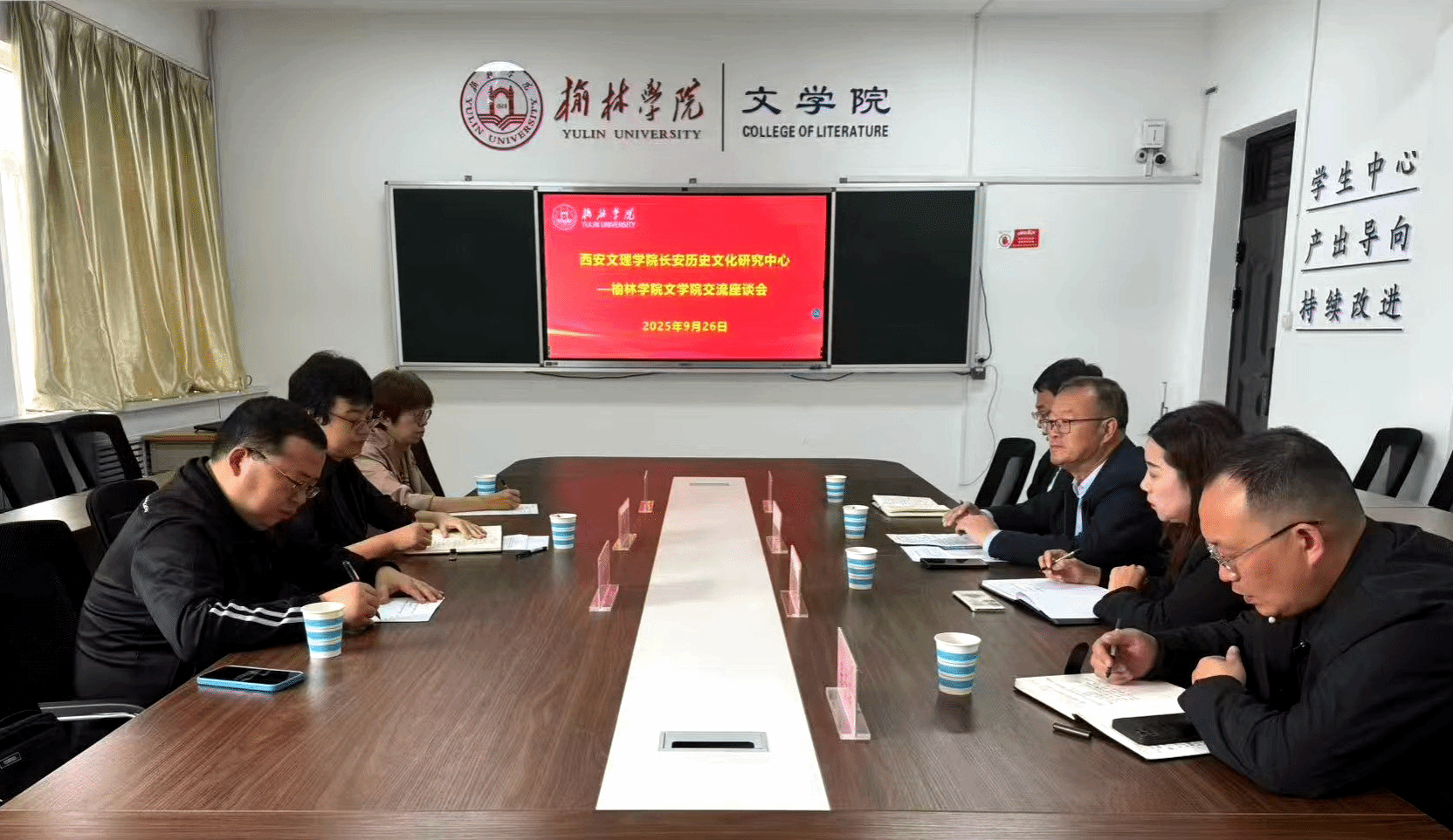 座谈交流会上,长安历史文化研究中心主任崔林介绍了中心的研究定位、方向凝练、成果产出、服务地方等工作,同陕北生态文化研究中心主任贺智利及榆林学院文学院樊文军院长进行了充分交流。
