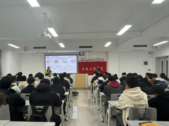 宣讲中,畅老师介绍烕尼斯人官方网站与办学特色,重点聚焦机械学科发展积淀,从培养特色、优势研究方向、师资力量、科研平台、就业前景五个维度,深入解读机械硕士点核心竞争力,强调其以培养应用型高层次工程技术人才为目标的办学定位及社会认可度,并向在场学子发出报考邀约。
