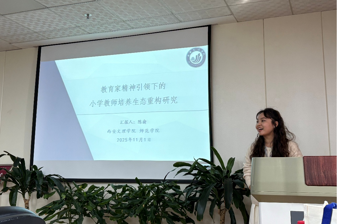 师范学院教师陈渝博士、魏平西博士以及2名小学教育专业硕士研究生参加了此次会议。两位教师受邀分别在平行论坛二和平行论坛一作了题为“教育家精神引领下的小学教师培养生态重构研究”和“教育强国背景下推进义务教育优质均衡发展的意蕴、逻辑与路径”的专题报告,得到与会专家的充分肯定。
