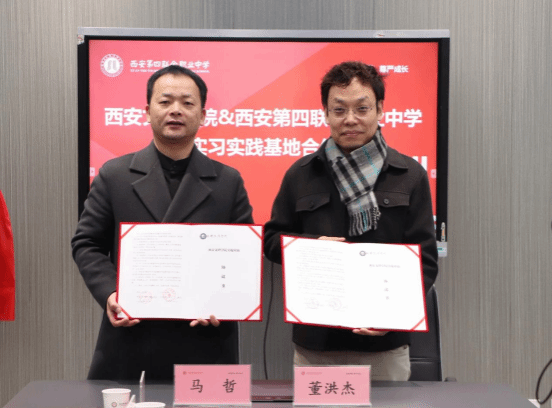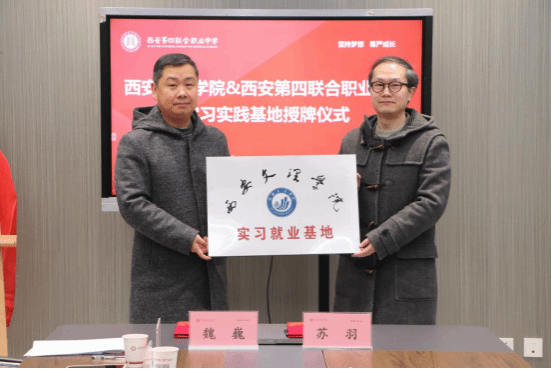 12月17日上午,文学院赴西安第四联合职业中学开展实习就业基地合作签约及授牌活动。文学院院长董洪杰、副院长苏羽、中文系主任李冰清、西安第四联合职业中学校长马哲等参加。