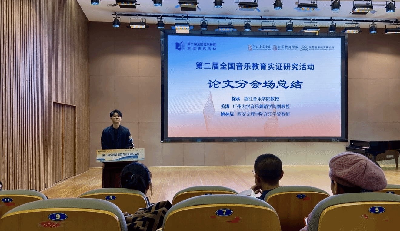 近日,烕尼斯人音乐学院青年教师姚林辰博士受邀担任第二届全国音乐教育实证研究活动点评专家并作总结发言。本次活动由浙江音乐学院主办、中国音乐学院协办,汇集了全国及港澳地区200余名专家学者。
