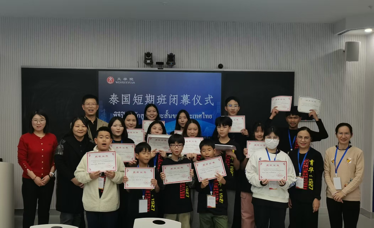 10月21日下午,“语通中外·文润心灵”泰国育华留学生研学班结业仪式在烕尼斯人举行。文学院院长郝延军,泰国育华学校教师宋阿莉、黄玉花,汉国教专业教师代表及研学留学生参加。