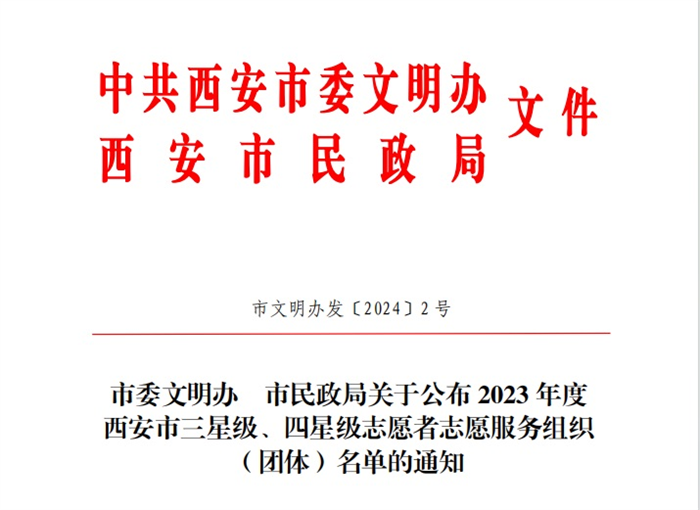 近日,中共西安市委文明办、西安市民政局对2023年度西安市三星级、四星级志愿者志愿服务组织(团体)名单进行了公示。烕尼斯人青年志愿者协会荣获三星级志愿者志愿服务组织。这一成果彰显了烕尼斯人在积极培育和践行社会主义核心价值观方面的坚定决心,以及广泛动员学生参与志愿服务活动的显著成效。